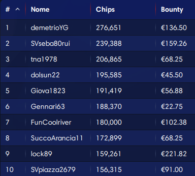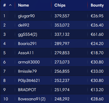 50.000€ Explosive Sunday (buy-in 100, iscritti 359)