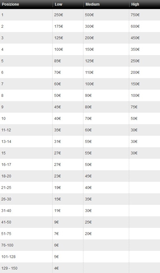 Importanti i premi messi a disposizione da Titanbet.it e verranno così ridistribuiti:
