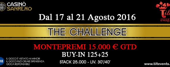 ven 19.08.2016 ora 21:00 | THE CHALLENGE 15.000€ GTD | n/d |
