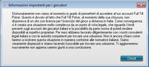Per il momento però, l’unico messaggio di Full Tilt che ci riguarda è il seguente.  Restiamo in attesa.