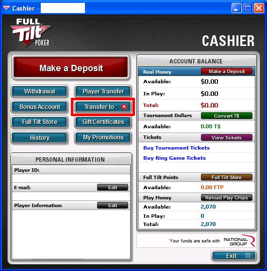 Le procedure dovrebbero essere abbastanza semplici, ma in caso di problemi sarà necessario contattare direttamente il supporto di FullTilt (support@fulltilt.com). Questo è quanto richiesto (obbligatorio nei paesi di Danimarca, Belgio, Spagna, Francia, Estonia) per poter “associare” i due account e provvedere al trasferimento di denaro :