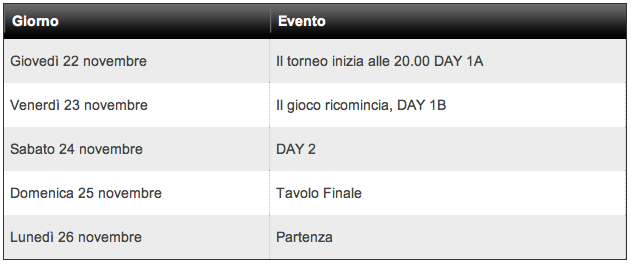 Ottima anche la struttura, con livelli da 60 minuti che saranno affrontati dai player con uno stack di 20 mila chip iniziali. Un’offerta davvero conveniente considerando il buy-in contenuto.