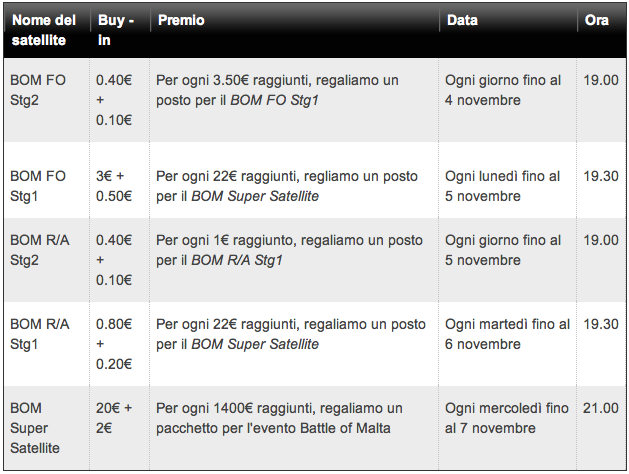 Due situazioni estremamente diverse — per fortuna — ma entrambe saranno ricordate con un solo nome: Battle of Malta. Quello del 2012 è un evento pokeristico unico che avrà luogo dal 22 al 25 novembre 2012 al Casinò Portomaso di Malta.
