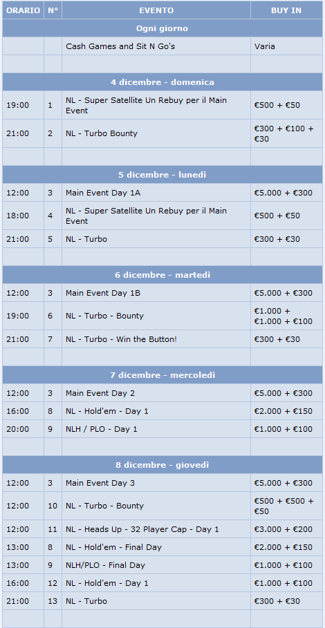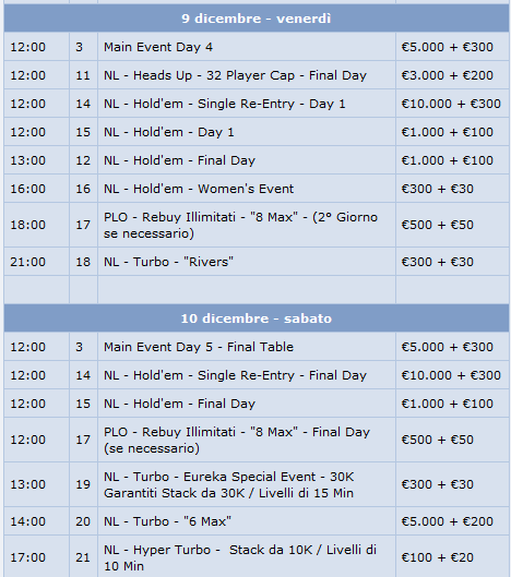 Questo il programma completo dell’EPT di Praga: