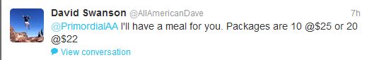 Tu che sei seduto al tavolo non fai altro che ordinarli, lui te li prepara e te li porta qui al Rio, in questi sacchetti bianchi con la scritta “All American Dave Approved…vai vai su Twitter a vedere”.
