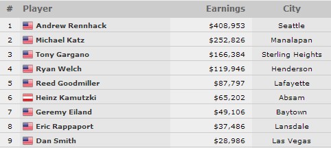 Rennhack ha giornato un eccellente torneo, sbagliando poco o nulla nel corso dei tre giorni di gara, non fallendo quando mancava, ovvero al tavolo finale, dove ha assistito all’eliminazione dei suoi avversari prima di battere Michael Katz all’Heads-Up conclusivo, prima vincendo il piatto decisivo K-K vs J-10s, con i re che tengono sul board e scavalcando il rivale nel count, poi  nella mano che lo ha decretato campione dove la sua coppia di 6 ha resistito contro il K-10s di Katz.