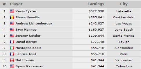 Finalmente si è concluso dopo quattro giorni anche l’evento#24, il $5,000 Six-Handed No-Limit Hold’em, dove il nostro Mustapha Kanit aveva chiuso al settimo posto. A vincere il torneo è stato proprio il suo “boia”, l’americano Kevin Eyster, che è riuscito a battere nel testa a testa finale il pro belga Pierre Neuville ($385,041), conquistando il suo primo braccialetto WSOP e la favolosa cifra di $622,988.