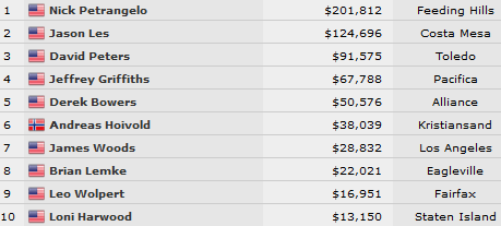 Secondo posto per il californiano Jason Les (124.696$) e terzo per il player dell’Ohio David Peters (91.575$).
