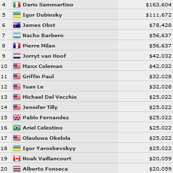 Questo il payout dei giocatori eliminati nel corso della giornata odierna:
