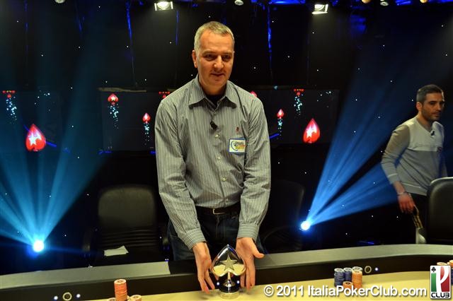 Gianfranco Mazzariello 455.000 : Gianfranco e’ un giocatore di 38 anni che vive a Rimini e gioca a poker da 4 anni e su PokerStars con la UserID “bende73”. I suoi migliori risultati nel mondo del poker includono un quarto posto all’ultimo IPT Nova Gorica, un sesto posto al Side event da €1,100 all’IPT San Marino e un decimo posto al Sunday Million qualche anno fa. Progetta di spendere la sua prossima vincita per prendersi cura della sua famiglia. Quando non gioca a poker lavora come imprenditore. Il suo gioco preferito e’ il Texas Hold’em e il suo stile e’ aggressive. Il suo giocatore preferito e’ Phil Helmuth. Gianfranco pensa che la qualita’ indispensabile per vincere a poker e’ fare molta attenzione al gioco, avere buoni reflessi e di usare un po’ di magia. Il suo sogno piu’ grande e’ di vincere un EPT.