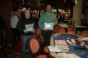 Il montepremi prevede 11.500 per il primo e 6500 per il secondo. Come stack siamo quasi pari. Propongo all’avversario di giocare per 9500 per il primo e 8600 per il secondo. Ricevuto l’ok dell’avversario, proseguiamo. Valuto l’avversario in sofferenza, quasi impaziente di concludere. La sensazione è giusta. Infatti in breve chiama un all in dove sono nettamente avanti al flop: le carte reggono e concludo con il primo premio e la targa da portare a casa.